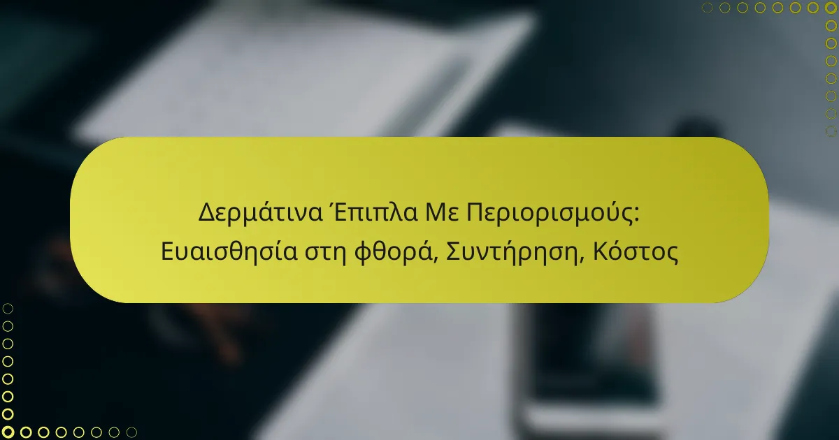 Οι εκτιμήσεις κόστους για δερμάτινα έπιπλα περιλαμβάνουν το αρχικό κόστος αγοράς, το κόστος συντήρησης και επισκευών, καθώς και τη σύγκριση με άλλα υλικά. Είναι σημαντικό να εξεταστούν αυτά τα στοιχεία για να κατανοήσετε την οικονομική αξία των δερμάτινων επίπλων.