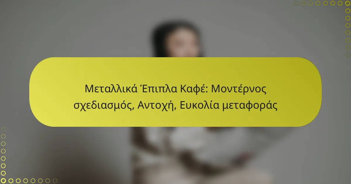 Τα μεταλλικά έπιπλα καφέ προσφέρουν έναν μοναδικό συνδυασμό μοντέρνου σχεδιασμού, αντοχής και ευκολίας στη μεταφορά, καθιστώντας τα ιδανικά για κάθε χώρο. Η επιλογή τους μπορεί να επηρεάσει την αισθητική και τη λειτουργικότητα, γι’ αυτό είναι σημαντικό να εξετάσετε τις ανάγκες σας και τις διαθέσιμες επιλογές στην αγορά.