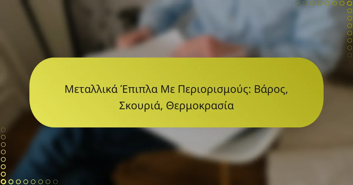 Τα μεταλλικά έπιπλα προσφέρουν μοναδικά πλεονεκτήματα, αλλά συνοδεύονται από προκλήσεις όπως το βάρος, η ευαισθησία στη σκουριά και οι επιπτώσεις από τις θερμοκρασίες. Αυτοί οι παράγοντες επηρεάζουν την αντοχή και τη λειτουργικότητα των επίπλων, απαιτώντας προσεκτική συντήρηση. Η σωστή διαχείριση αυτών των ζητημάτων είναι κρίσιμη για τη διατήρηση της αισθητικής και της μακροχρόνιας χρήσης τους.